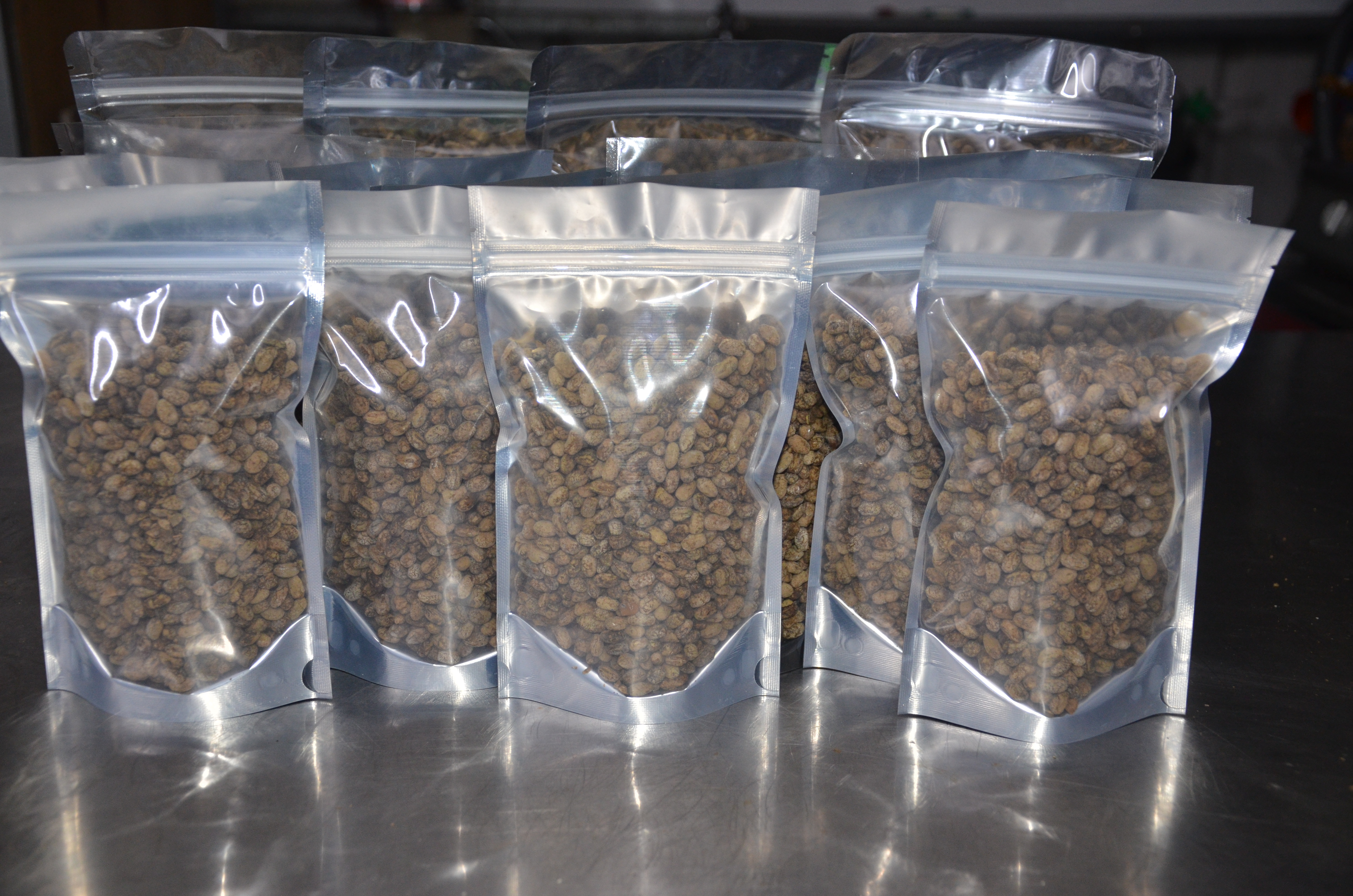 黃豆接種米麴經過幾天的製麴,變成黃綠,將表面孢子洗掉然後曬乾即成