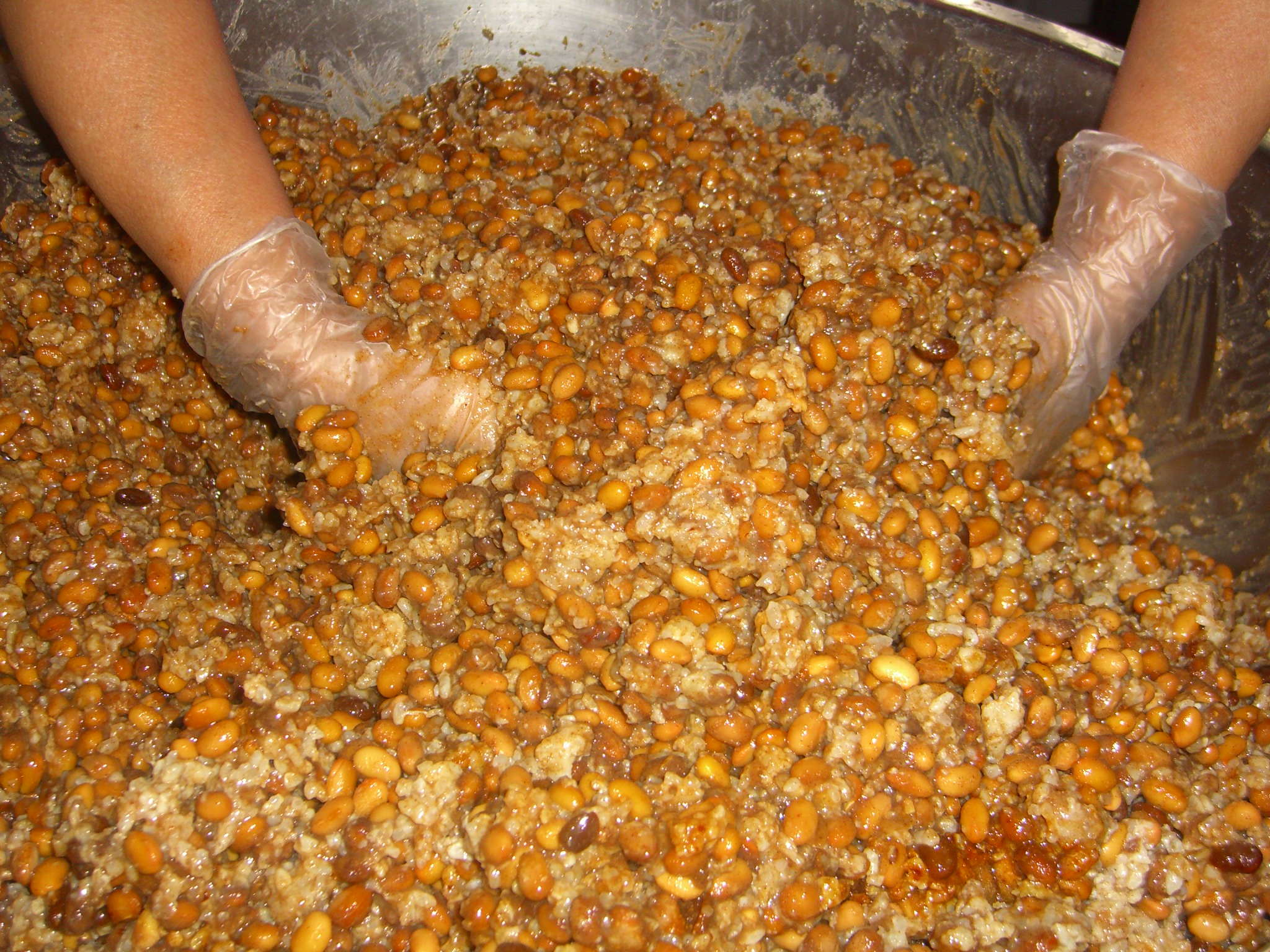 米麴黃豆加上烘烤熟的小麥粉,不磨碎佳少量的鹽混合入甕,五年那麼長時間的釀造發酵,耐心的等待至今揭開,成美味的烏金,大大區別市面上快速即成的產品,世間沒有幾家會這麼做呢?