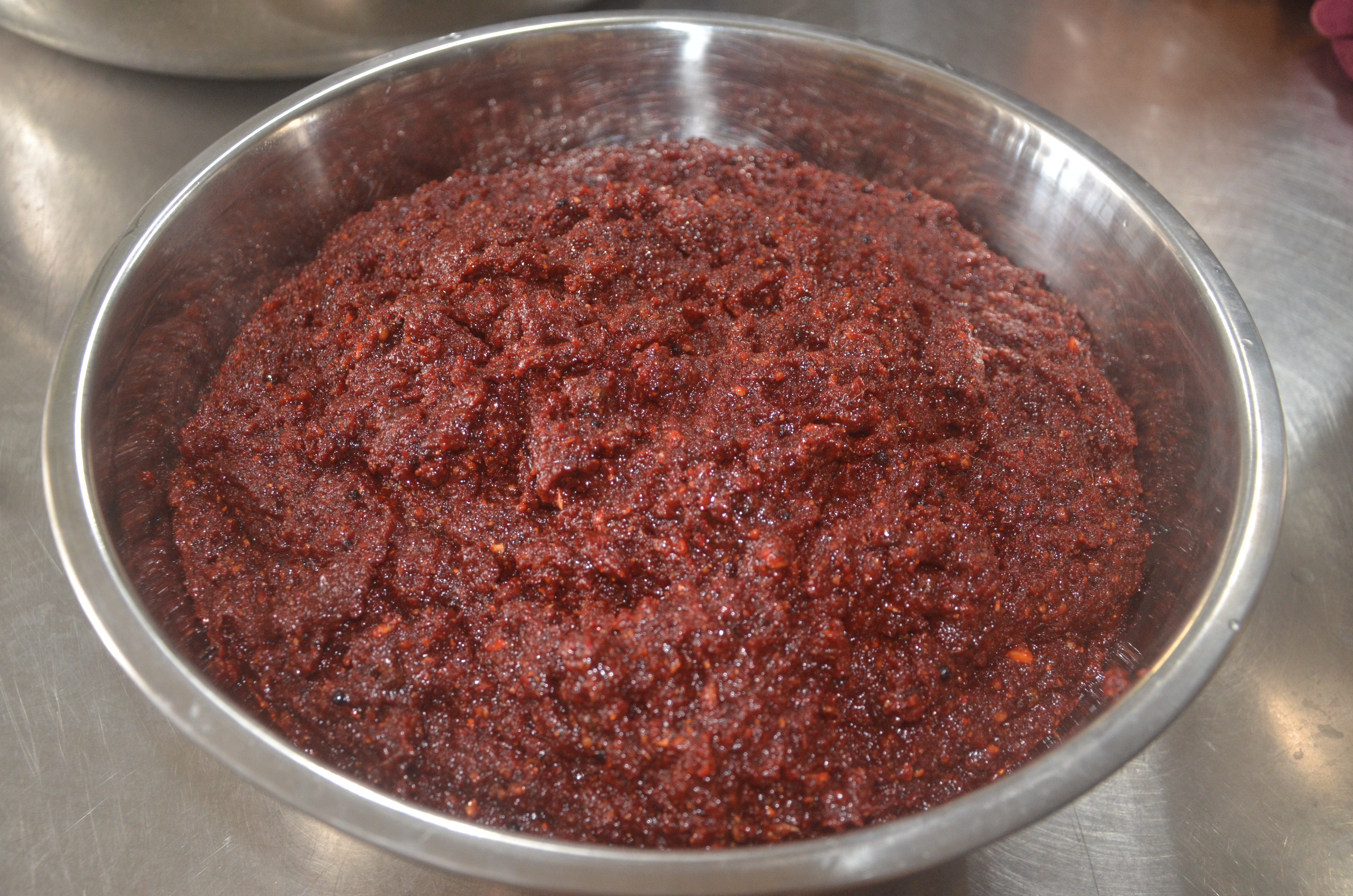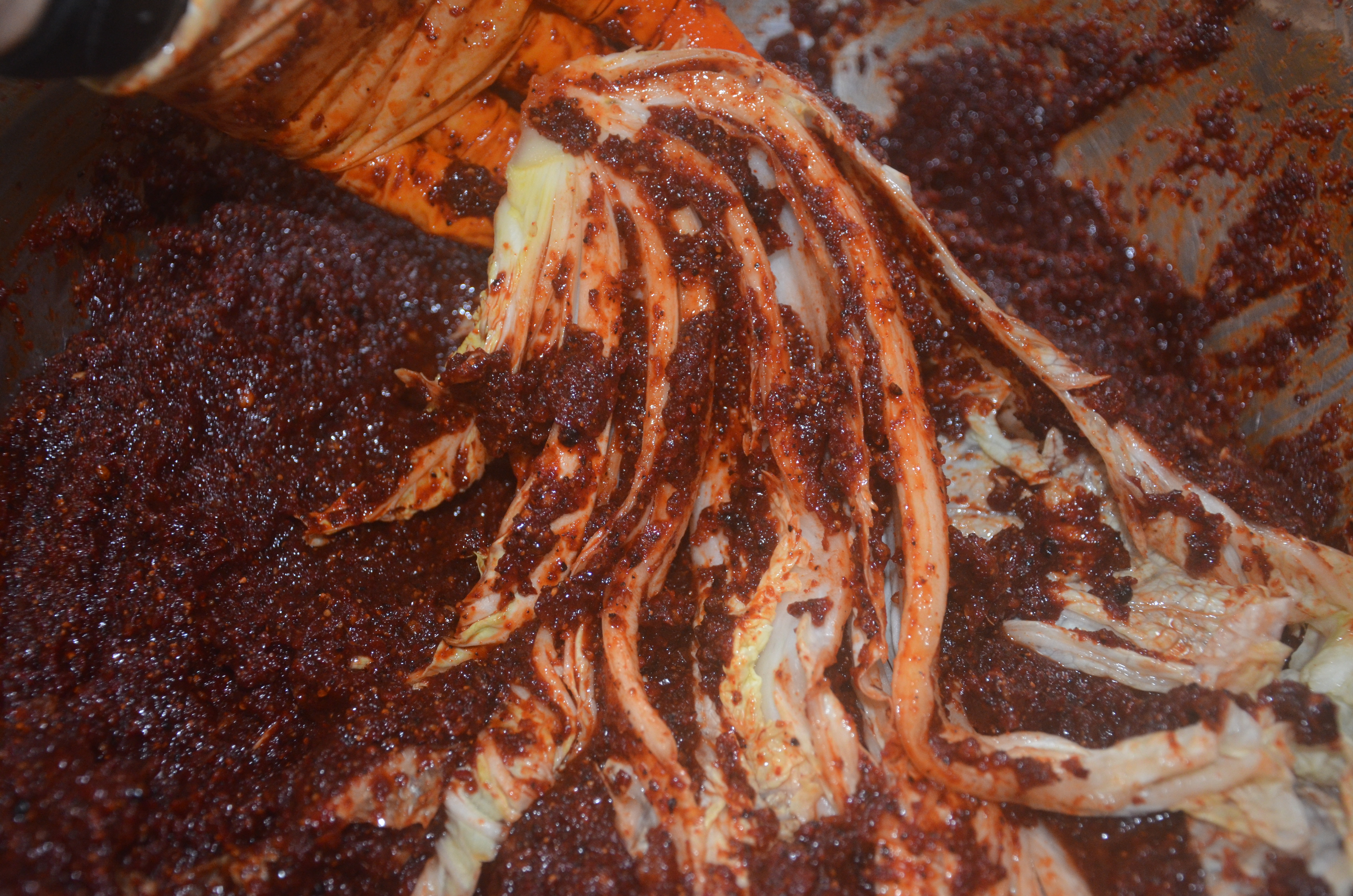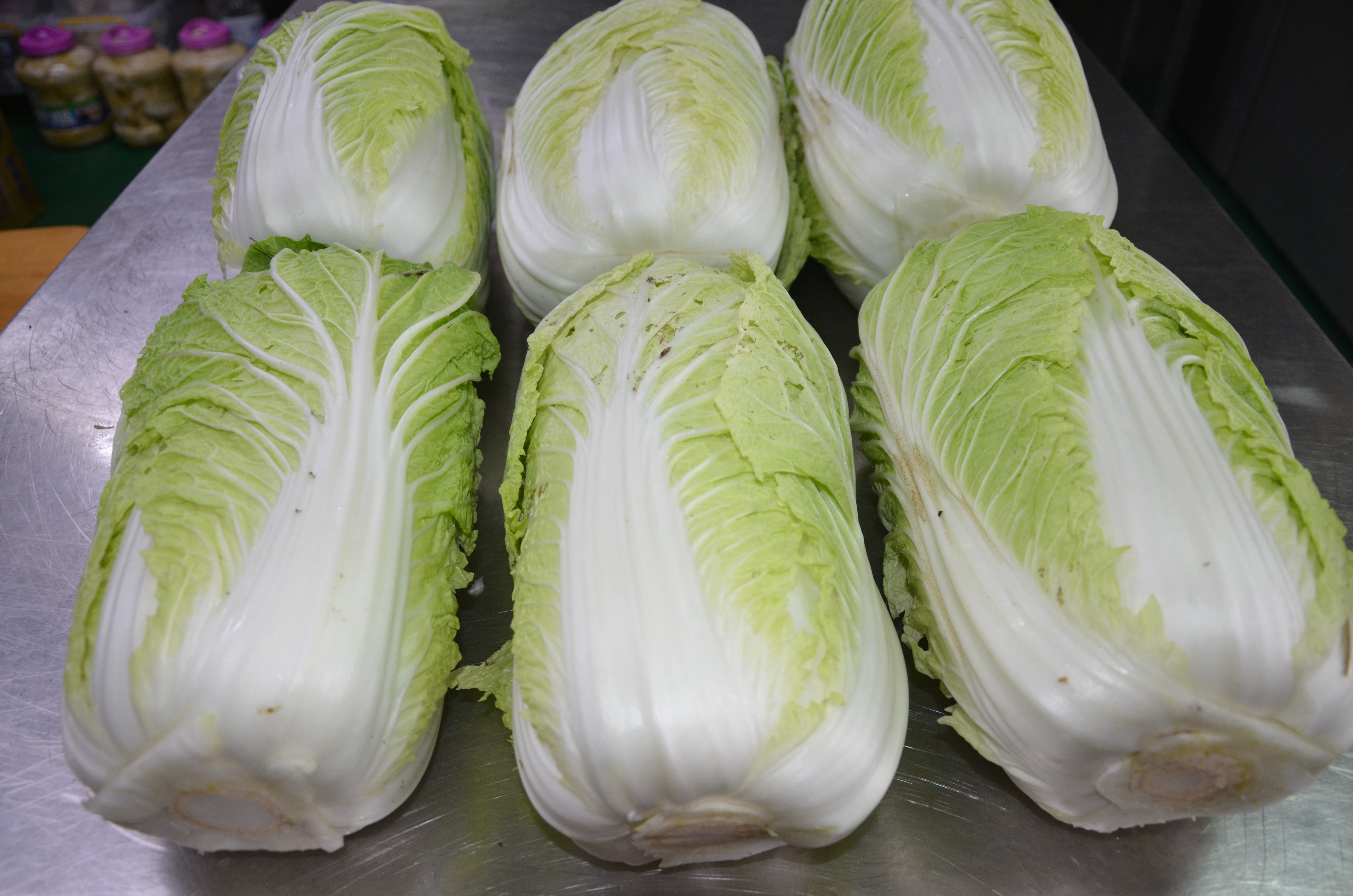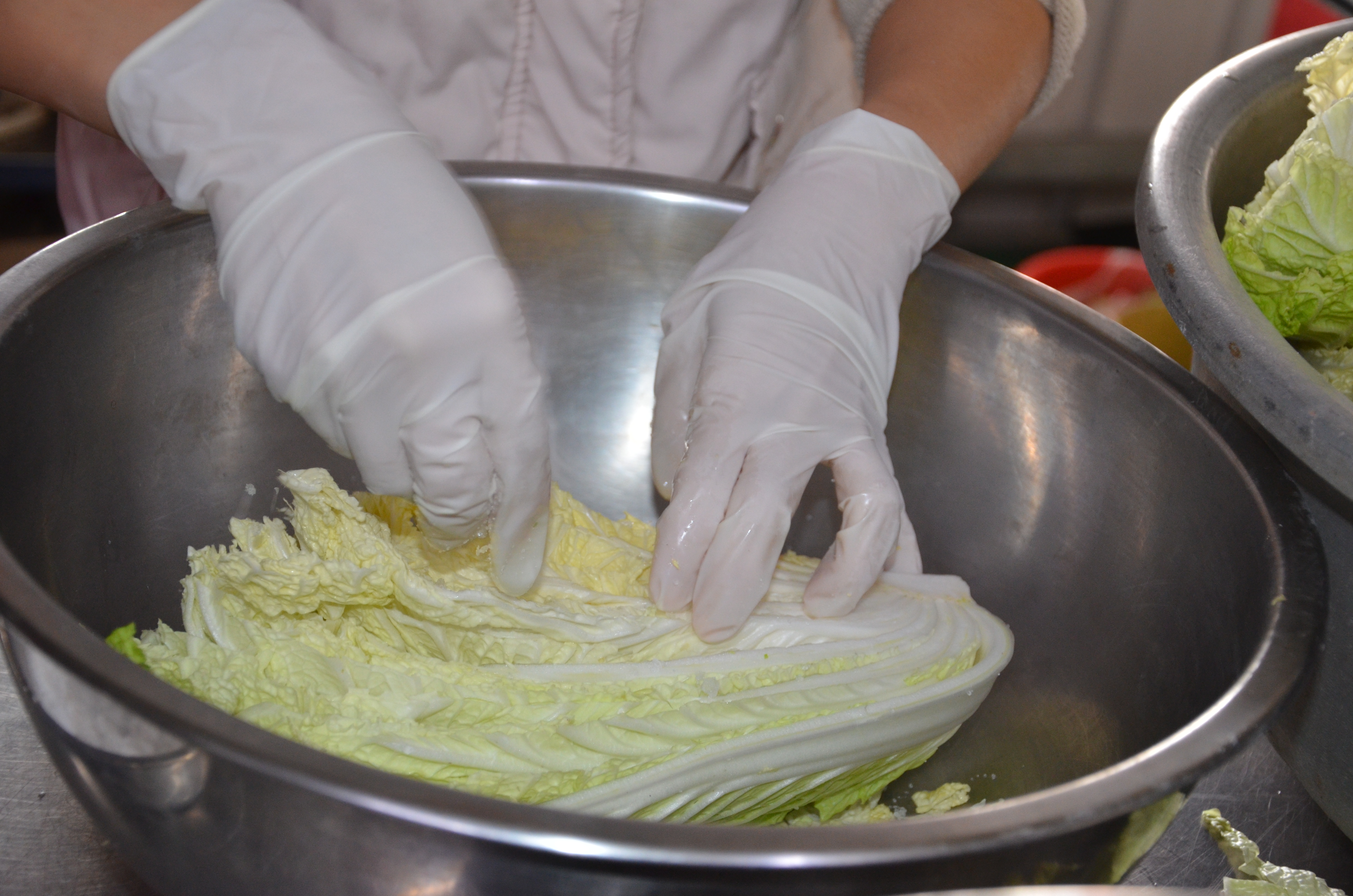 先將外面的深綠的葉子剝掉,然後切開抹鹽拿到外面吹風萎凋,以韓國辣椒粉為主調配調味料,將調味料抹在葉片之間,搭配韭菜蔥薑蒜頭辣椒等配料裝入甕中,並加入益生菌乳酸菌,壓緊製出湯汁後密封醃漬發酵.經過3個月以上即可.熟成越久味道越香醇.這種接入純益生乳酸菌的醃漬發酵,沒有雜味有較純的風味,且食鹽的使用量低,對身題沒有害處,加上益生菌的好處,這種作法得韓式泡菜很健康養生的.