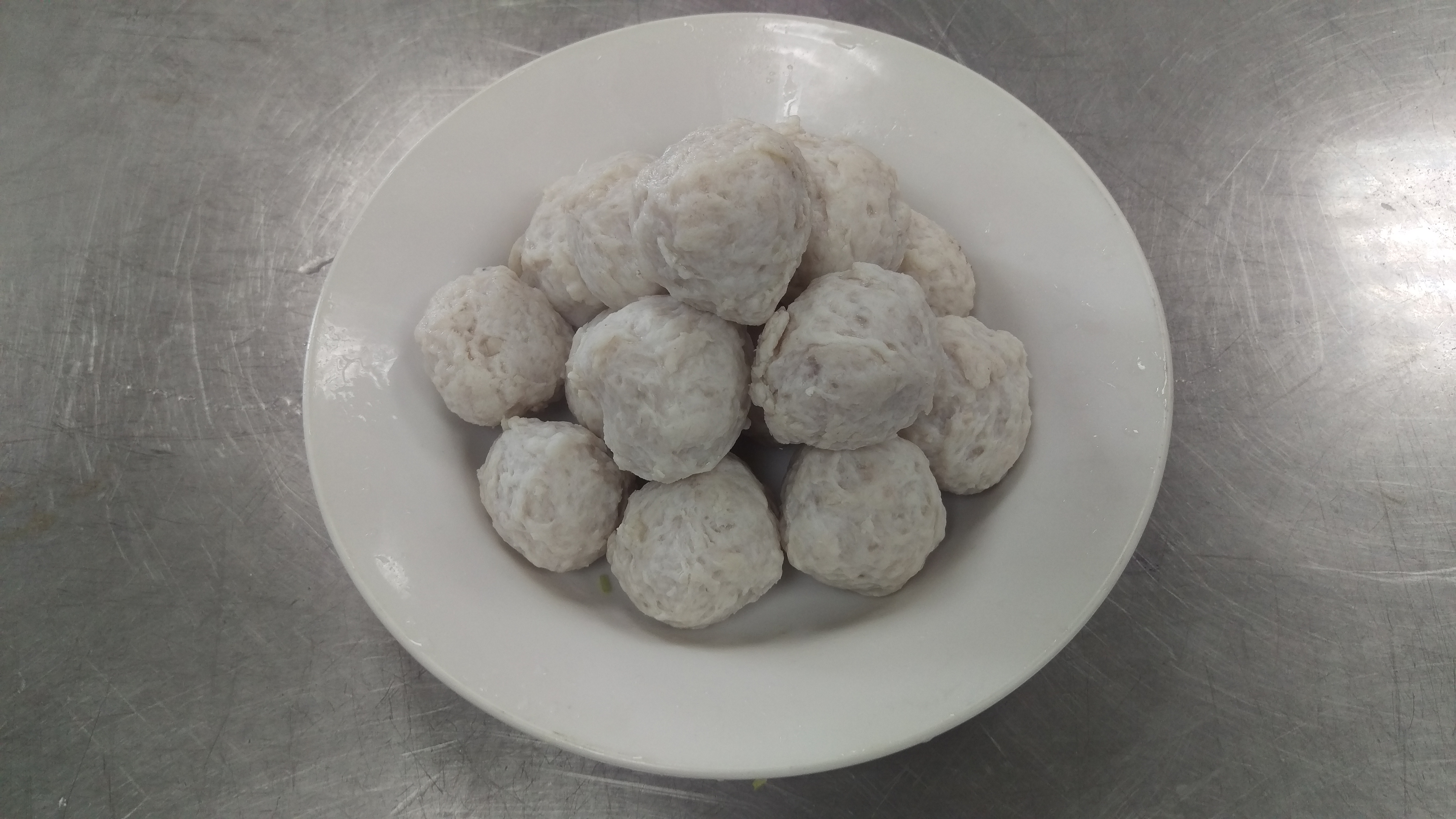 選用虱目魚魚背肉,手工剁細碎凝膠加入調味料,成型後水煮,最後搭配米粉小捲,簡單可口美味